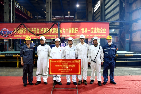 On July 10, 2023, the Steel Cutting Ceremony of one 50,000 DWT Product Oil/Chemical Tanker (IMO Type 2) with Hull No.0405037 has been carried out successfully by New Times Shipbuilding Co., Ltd. The representatives from the owner CDB Leasing (International) Co., Ltd. and the representatives from the classification societies DNV and CCS attended and witnessed the ceremony together.