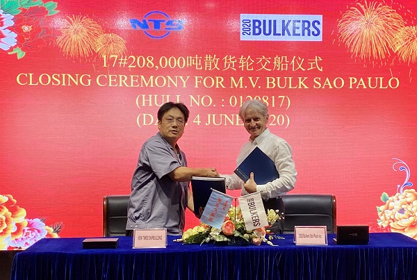 On June 4, 2020, the closing ceremony for 17# 208,000 DWT Bulk Carrier was held at the meeting room on 8th floor of New Times Office Building. Our CEO Mr. Liu Haijin, Executive General Manger Mr. Zhang Yuyong and the representative from 2020 Bulkers Ltd. Mr. Davor Radic attended this ceremony. The vessel was smoothly and successfully delivered by us and accepted by the Buyer.