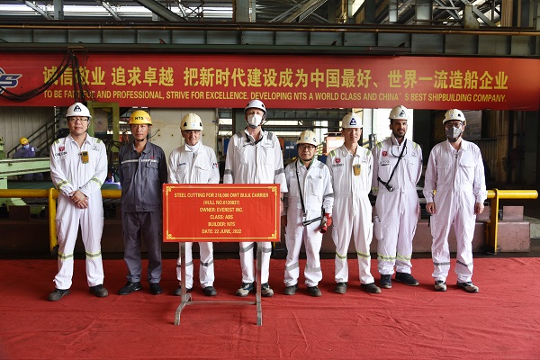 On June 22, 2022, the steel cutting of one 210,000 DWT LNG DUAL FUEL Bulk Carrier bearing builder's hull no.0120837 has been carried out successfully by New Times Shipbuilding Co., Ltd.. Our General Manager Assistant Mr. Xu Zhenyu, the representatives from Himalaya Site Manager Mr. Davor Radic and representative from ABS Classification Society attended and witnessed this event.