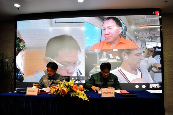 On 15 February, 2022, the closing ceremony for 27# 110,000 DWT Oil Tanker with Hull No.0311127 was held at the meeting room on 8th floor of New Times Office Building. Our CEO Mr. Liu Haijin, Executive Deputy General Manager Mr. Zhang Yuyong, Deputy General Manager & Executive Director Mr. Yuan Heng and owner's representative were present, and the members from owner's head office also witnessed this ceremony through video. The vessel was smoothly and successfully delivered by us and accepted by the Owner.