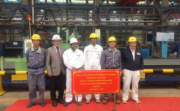 At 9:38 a.m. on 7th May, 2018, the steel cutting ceremony for No.8 and No.9 50,000 DWT Product Oil/Chemical Tankers was held in the cutting workshop of NTS. General Manager Assistant Mr. Xu Zhenyu, representatives from Navig8 and KR classification society attended this event.