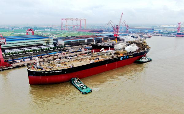 On August 16, 2021, one 110,000 DWT Product/Crude Oil Tanker bearing builder's hull no.0311127 launched successfully from Drydock No.3. Our CEO Mr. Liu Haijin, Executive Deputy General Manager Mr. Zhang Yuyong, representatives from EPS Site Manager Mr. Ni Jie together with the site members and representatives from ABS classification society attended and witnessed this event.