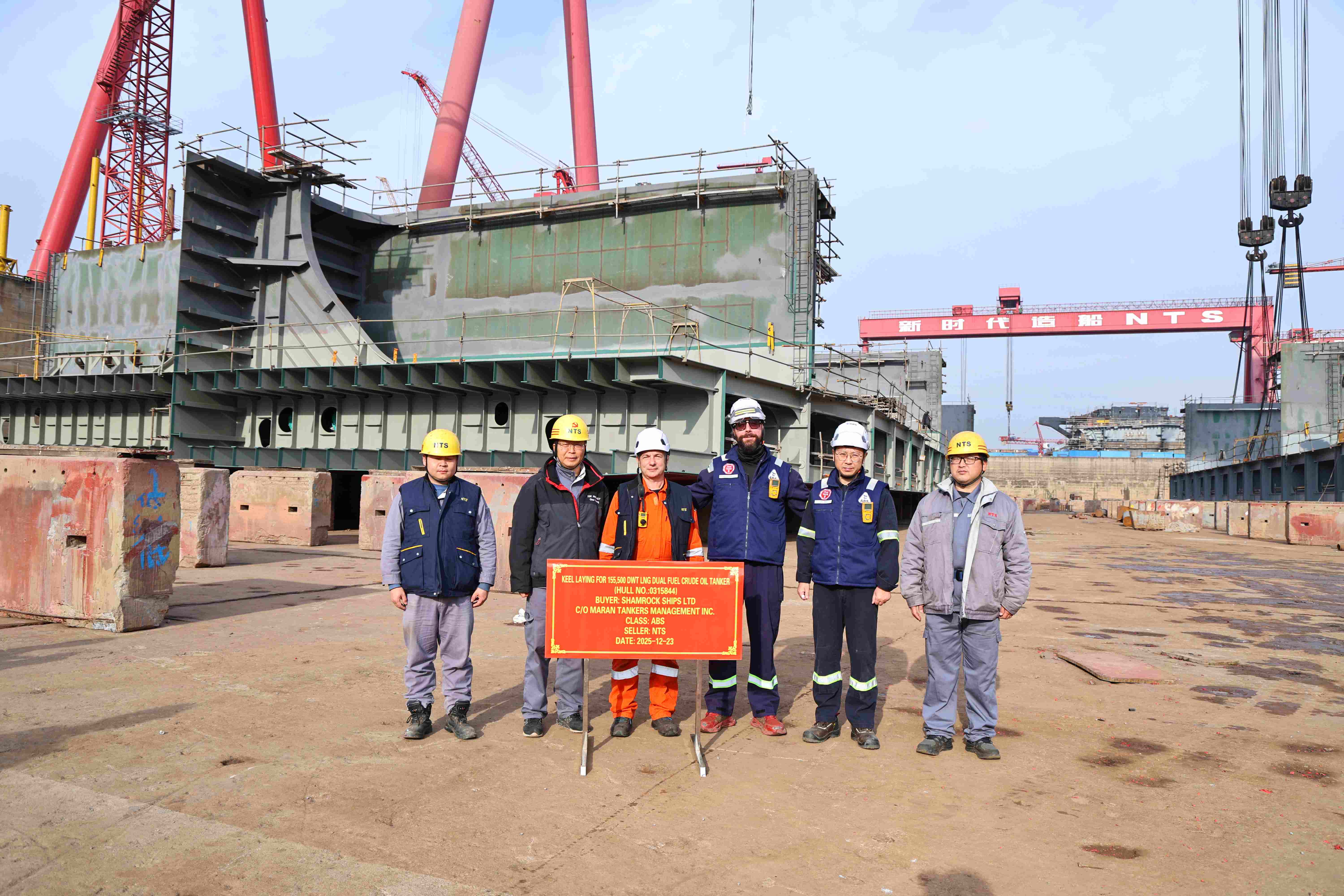 On December 23, 2025, the keel laying of one 155,500 DWT LNG Dual Fuel Crude Oil Tanker bearing builder's hull no.0315844 was carried out successfully by New Times Shipbuilding Co., Ltd.. The representatives from shipyard, Maran Site Team and ABS classification society attended and witnessed this event.