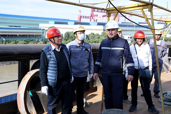 Furthermore, accompanied by Mr. Zhang Yuyong, Executive Deputy General Manager of the company and Mr. Romeo Mustata, Site Manager of Dynacom, Mr. and Mrs. Procopiou boarded the first ship in the series of 73,500 DWT oil tankers ordered by Dynacom that is currently in the outfitting stage at the quay, and gained a detailed understanding of the construction progress. This ship is scheduled to be delivered in early January 2026. Mr. Procopiou highly recognized the construction quality of the ship and the project management work, and expressed his expectation that the new ship will inject new vitality into Dynacom's fleet.