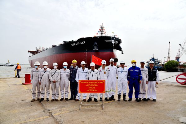 On April 27, 2022, the launching of one 156,500 DWT Crude Oil Tanker bearing builder's hull no.0315855 has been carried out successfully by New Times Shipbuilding Co., Ltd.. Our Chairman Mr.Yuan Kaifei, CEO Mr. Liu Haijin and Executive Deputy General Manager Mr. Zhang Yuyong, the representatives from Seaworld Site Manager Mr. Stelios Karamplakas together with the site members and the representatives from ABS classification society attended and witnessed this event.