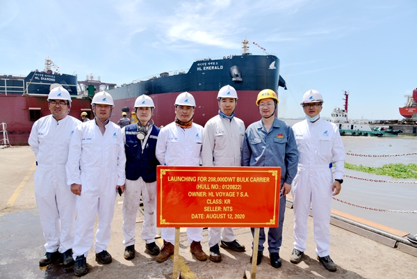 On August 12, No.21 and No.22 208,000 DWT Bulk Carriers launched successfully from NTS Drydock successively. Our CEO Mr.Liu Haijin, Executive General Manger Mr. Zhang Yuyong and the representatives from the Owner H-Line Shipping and KR Class attended and witnessed the ceremony together.