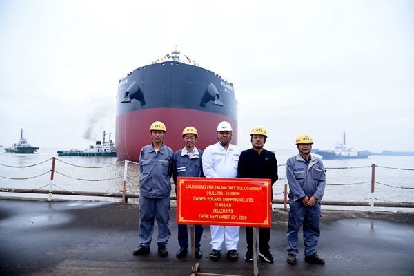 On September 23, No.19 208,000 DWT Bulk Carrier launched successfully from NTS Drydock. Our CEO Mr.Liu Haijin, Executive General Manger Mr. Zhang Yuyong, Assistant General Manager Mr. Ding Baiying, Assistant General Manager Mr. Dujiang and the representatives from the Owner POLARIS and Class KR attended and witnessed the ceremony together.