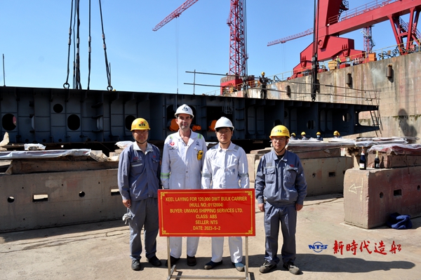 On May 2, 2023, the keel laying of one unit of 120,000 DWT Bulk Carrier bearing builder's hull no. 0112004 has commenced. Our Production Manager Mr. Chen Yuefeng, representatives from MITTAL site office and representatives from ABS classification society attended and witnessed this event.