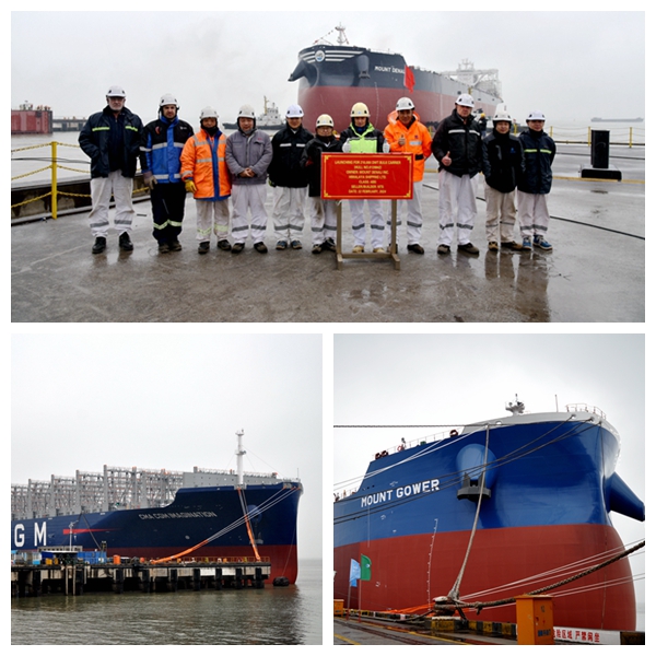At 9:00 a.m., we held naming ceremony for one unit of 210,000 DWT Bulk Carrier with Builder's Hull No.0120849 that was built for Eastern Pacific Shipping Pte. Ltd. Our CEO Mr. Liu Haijin, Executive Deputy General Manager Mr. Zhang Yuyong, Deputy General Manager Mr. Yuan Heng, COO of Eastern Pacific Shipping Pte. Ltd Captain Anil attended this ceremony. Our CEO Mr. Liu Haijin and Commercial Director of Eastern Pacific Shipping Pte. Ltd Mr. Anatoly Robchinsky delivered speeches respectively. Godmother Ms. Pei Qi, Teo named the vessel for "MOUNT GOWER".