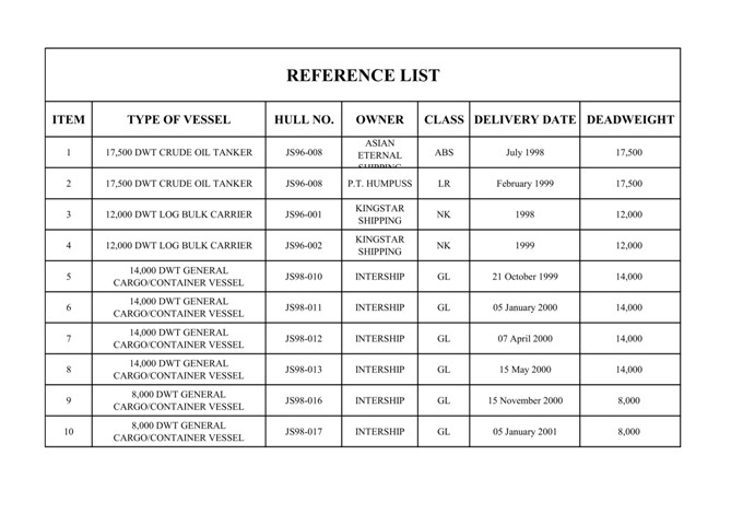 REFENCE LIST 1998-2010