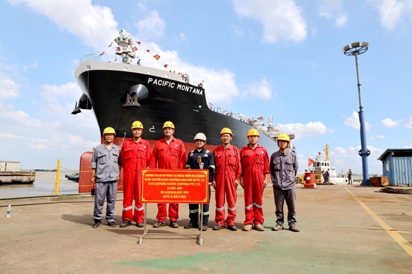 On July 9, 2025, the launching ceremony of one 50,000 DWT Chemical/Product Oil Tanker bearing builder's hull no.0405058 has been carried out successfully by New Times Shipbuilding Co., Ltd. The representatives from EPS Site Office, ABS classification society and shipyard attended and witnessed the ceremony together.