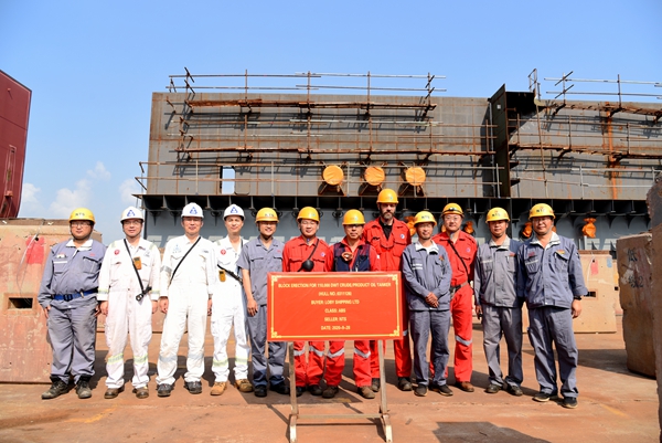 On September 28, 2020, the block erection ceremony of No.26 111,000 DWT Crude/ Product Oil Tanker was held in Drydock No.3. Our Deputy General Manger Mr. Zhu Hangang and representatives from the owner EPS and the classification society ABS attended this event.