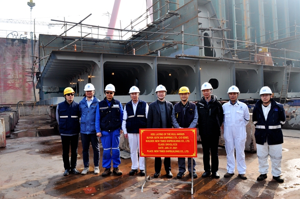 On January 28, 2021 , the Keel Laying Ceremony of four units of 50,000 DWT Product Oil/Chemical Tankers (IMO Type 2) with Hull Nos.0405024/25/26/27 has been carried out successfully by New Times Shipbuilding Co., Ltd. Our Deputy General Manager Mr.Zhu Hangang and representatives from the owner, DNV-GL Class and CCS Class attended and witnessed the ceremony together.