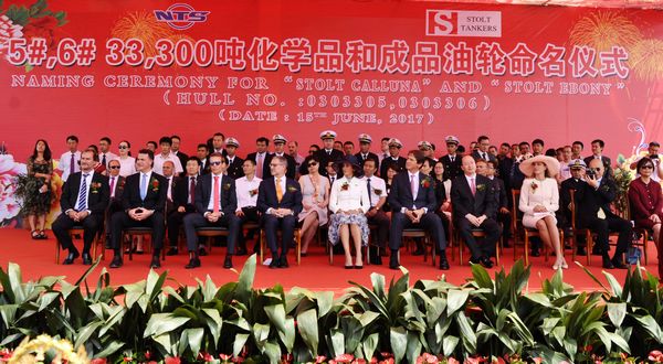 n June 15, the naming ceremony of No.5 and No.6 33,000 DWT Product Oil and Chemical Tankers were held ceremoniously in our shipyard. These two vessels are named as " STOLT CALLUNA " and " STOLT EBONY" respectively.