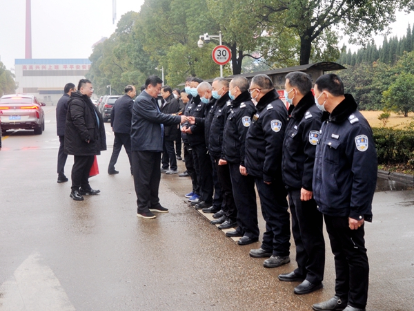 1月22日,癸卯農(nóng)歷大年初一上午9時許,公司領(lǐng)導(dǎo)袁凱飛、朱炳康、劉海金、周燦榮、張玉永、袁衡、杜江、鄭忠、徐震宇、劉鋒一行先后來到西區(qū)北門、東區(qū)碼頭2#引橋、新區(qū)空壓機房、新區(qū)1#食堂、新區(qū)中大門,看望、慰問新春佳節(jié)依然在寒冬中堅守崗位、默默工作的員工同志們,祝愿大家身體健康、闔家幸福,鼓勵大家以飽滿的熱情、戰(zhàn)斗的姿態(tài)為各項工作的全面完成做出新的貢獻(xiàn)。