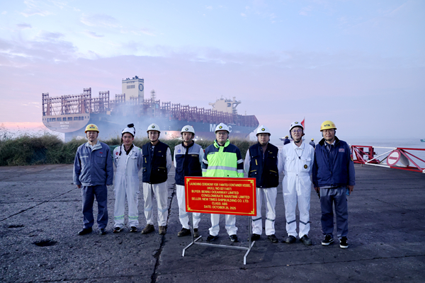 10月25日清晨,公司2#塢區(qū)域,船舶下水各項工作有序進行,7#11400箱LNG雙燃料動力集裝箱船在海事拖輪的牽引下駛出船塢,如期實現(xiàn)下水大節(jié)點目標。