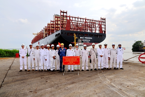 8月7日、8日,公司2#塢、3塢區(qū)域,船舶下水各項工作有序進行,2#3#4#11400箱LNG雙燃料動力集裝箱船在海事拖輪的牽引下,先后駛出船塢,如期實現(xiàn)下水大節(jié)點目標。