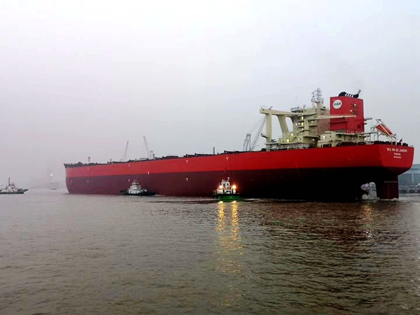 6月11日清晨5點,公司建造的3#325000噸超大型礦砂船“新時代初心拾號”駛離企業(yè)舾裝碼頭,開赴浙江花鳥山海域開展試航調試工作。