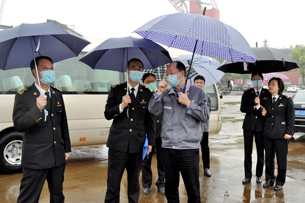 現(xiàn)場繁忙的生產(chǎn)場景讓來訪的嚴華斌處長一行感受到了企業(yè)生產(chǎn)建設熱火朝天的氛圍,展廳陳列的船舶產(chǎn)品展現(xiàn)了企業(yè)發(fā)展所取得的輝煌成就、總經(jīng)理劉海金對企業(yè)發(fā)展前景的描述更是讓嚴華斌處長一行稱贊不已。嚴華斌處長表示,看到企業(yè)蒸蒸日上的發(fā)展勢頭,企業(yè)有業(yè)務方面的任何需求都可以隨時與海關進行無障礙溝通,海關將一如既往地做好各項服務工作,引導企業(yè)規(guī)范經(jīng)營,助力企業(yè)健康快速發(fā)展。