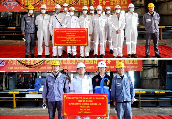 在28#50000噸化學品油船命名儀式舉行的同時,公司東區(qū)鋼加車間,34#50000噸化學品油船、4#120000噸散貨船開工點火儀式相繼舉行,生產(chǎn)管理部、質(zhì)量管理部、營銷部等相關(guān)人員與兩船的船東代表、船級社代表共同出席儀式,兩船船體結(jié)構(gòu)件開始制作。