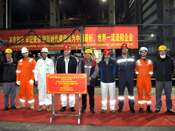 14日下午4:58,44#115000噸成品油船開工點火儀式在東區(qū)鋼加車間舉行,常務副總經(jīng)理張玉永與希臘船東Capital公司代表等出席儀式。希臘船東Capital公司,目前在我們企業(yè)訂購了2艘115000噸成品油船,此次開工的是他們的首制船舶。44#115000噸成品油船總長249.9米,型寬44米,型深21.5米,設計吃水13.6米,結構吃水15.2米,艙容130,000cbm,載重噸為115,800MT。
