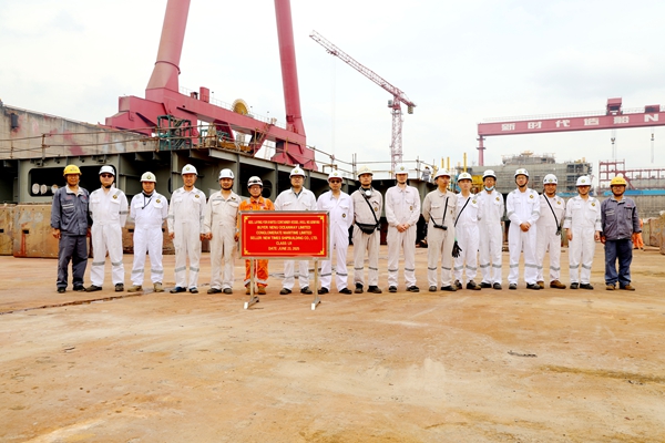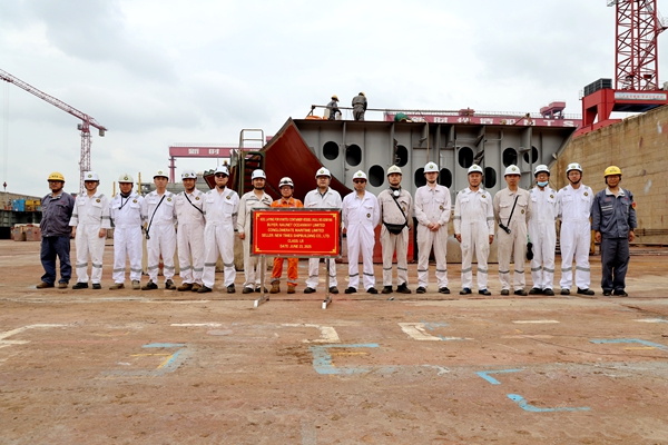 6月23日上午,公司在3#塢區(qū)域舉行船舶進塢合攏儀式,5#6#8100箱LNG雙燃料動力集裝箱船船體分段開始進塢搭載建造。