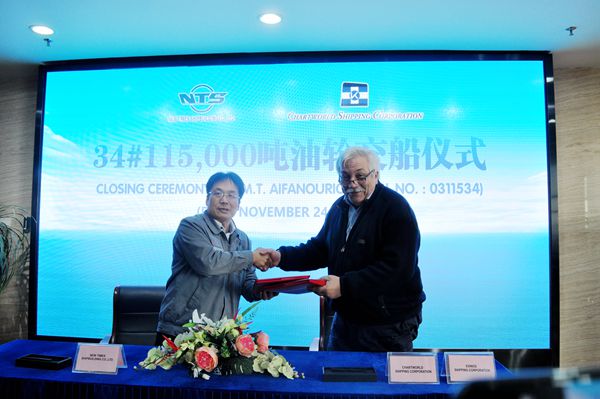 11月24日,公司先后舉行船舶命名與交付儀式,34#115000噸油船被命名為“AIFANOURIOS”號(hào),并成功交付希臘船東Chartworld公司運(yùn)營(yíng)。