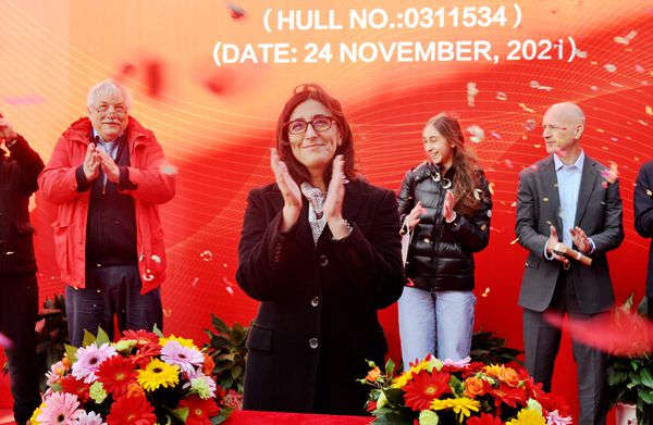 此次交付的船舶是希臘船東Chartworld公司訂制的4艘115000噸油船系列船中的第四艘,前三艘船舶分別于今年5月19日、8月12日、9月27日交付。該型油船船長(zhǎng)249.9米,型寬44米,型深21.5米,設(shè)計(jì)吃水13.6米,結(jié)構(gòu)吃水15.2米,艙容130000立方米,載重量為115000噸。該船東在我們企業(yè)還訂有4艘13000TEU集裝箱船,預(yù)計(jì)將于明年開(kāi)工建造。