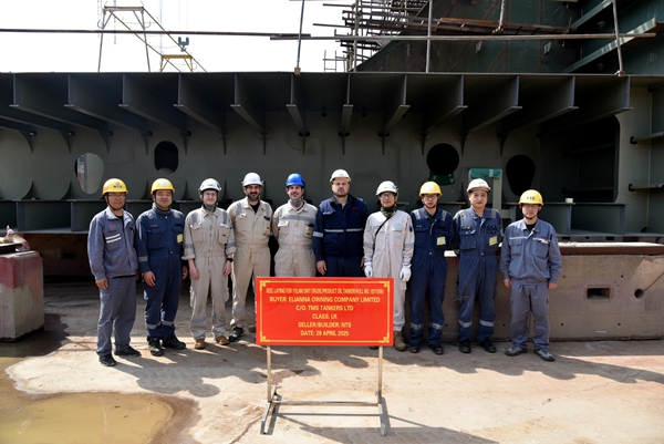 4月29日上午,公司在西區(qū)1#塢舉行船舶進(jìn)塢合攏儀式,58#50000噸Ⅱ類化學(xué)品船、56#115000噸油船船體結(jié)構(gòu)分段開始搭載建造。