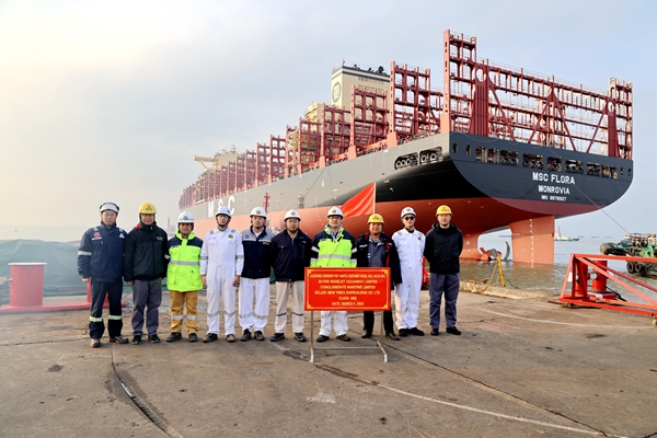 3月5日上午,公司2#塢區(qū)域,1#11400箱雙燃料動(dòng)力集裝箱船在海事拖輪的牽引下從塢內(nèi)駛出,船舶下水大節(jié)點(diǎn)目標(biāo)如期實(shí)現(xiàn)。
