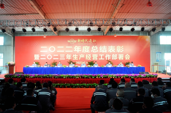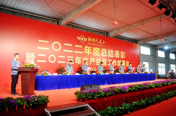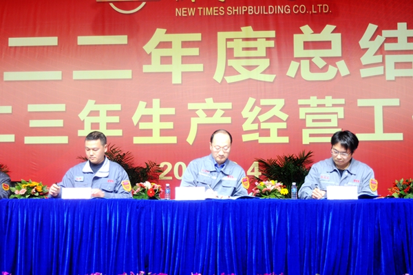 常務(wù)副總經(jīng)理張玉永主持大會(huì)。他指出,2022年,我們?cè)诠径聲?huì)、黨委和經(jīng)營(yíng)層的正確領(lǐng)導(dǎo)下,戰(zhàn)疫情、保生產(chǎn),順勢(shì)而為,逆流而上,交出了一份滿意的答卷。今天我們新時(shí)代造船在這里隆重舉行“二〇二二年度總結(jié)表彰暨二〇二三年生產(chǎn)經(jīng)營(yíng)工作部署會(huì)”,回顧奮進(jìn)的2022年,致敬奮勇當(dāng)先的先進(jìn)榜樣;展望希望的2023年,吹響奮勇前行的戰(zhàn)斗號(hào)角,帶動(dòng)員工凝心聚力、踔厲篤行,促進(jìn)公司各項(xiàng)管理全面提升,奮力譜寫新時(shí)代高質(zhì)量發(fā)展新篇章,把新時(shí)代打造成世界一流的百年造船企業(yè)。