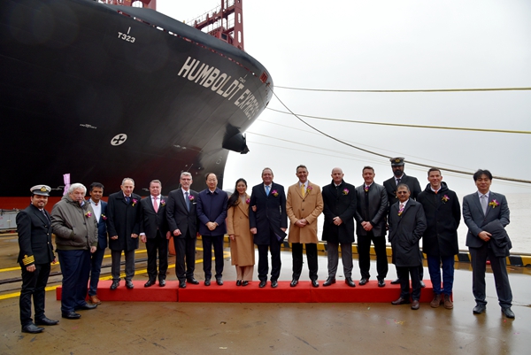 教母Brenda Hojgaard女士將新船命名為“Humboldt Express”號(hào),并祝愿其在今后的航行中永遠(yuǎn)平安,為船東帶來源源不斷的財(cái)富。
