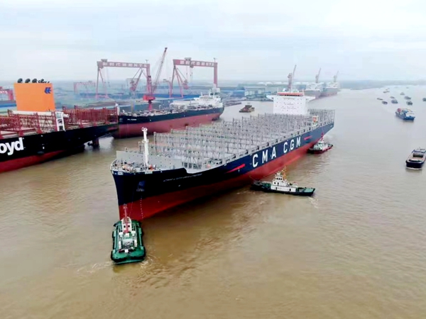 4月22日中午,為船東EPS建造的4#7000箱集裝箱船——“CMA CGM BOLDNESS”號,駛離公司舾裝碼頭,開始了她的首航之旅。