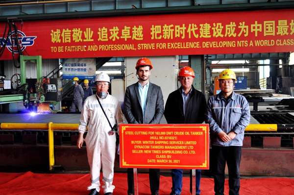 3月30日下午1:00,公司在新區(qū)鋼加車間三跨舉行船舶點火開工儀式,21#22#163000噸原油船船體零部件切割正式預制。常務副總經理張玉永、總經理助理丁柏英與希臘船東達能孔公司代表一起出席活動。