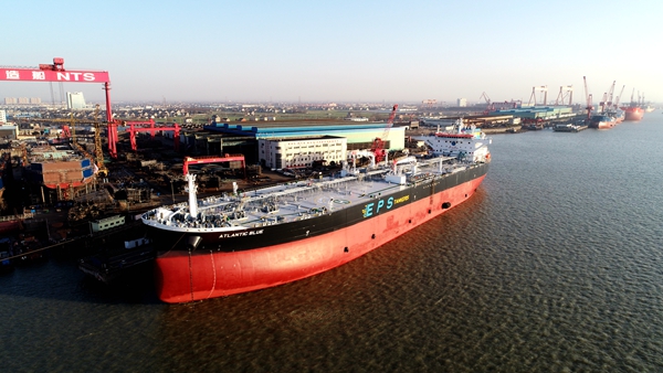 船東新加坡EPS公司在我們企業(yè)訂制了4艘110000噸油船和3艘210000噸散貨船,此次交船的是4艘系列110000噸油船中的首艘船舶。