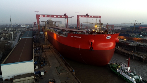 新年首艘船舶-——6#325000噸超大型礦砂船下水(圖)