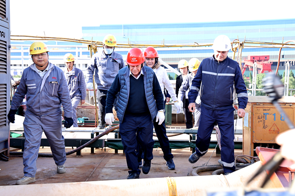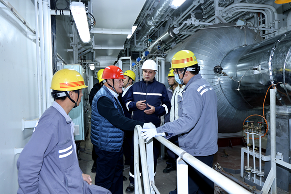 訪問參觀中,Procopiou一行來到Dynacom駐廠辦公室,與駐廠監(jiān)造團隊進行交流,親切慰問了長期堅守在建造一線的員工,并對團隊成員的專業(yè)監(jiān)造和辛勤付出表示感謝。