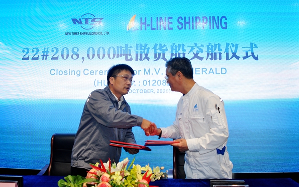 韓國(guó)船東H-Line Shipping Co., Ltd.在我們企業(yè)訂有5艘208000噸散貨船,此次交付的是該系列船中的第二艘 。