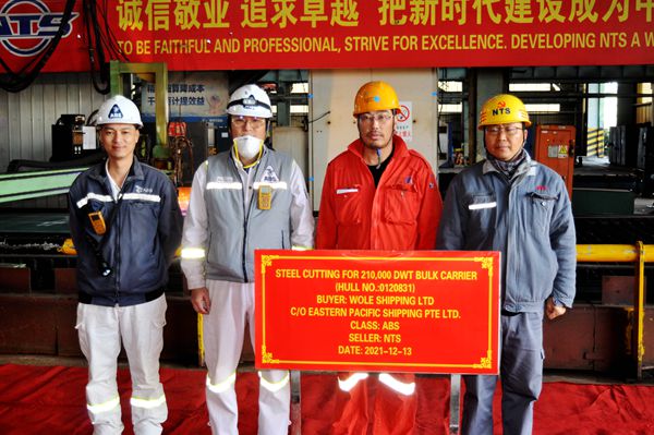 12月13日上午,公司在新區(qū)鋼加車間三跨舉行船舶點(diǎn)火開工儀式,31#、45#210000噸散貨船船體結(jié)構(gòu)件開始切割預(yù)制。生產(chǎn)管理部、質(zhì)量管理部、營(yíng)銷部相關(guān)人員與新加坡船東Eastern Pacific Shipping Pte. Ltd.(EPS)現(xiàn)場(chǎng)經(jīng)理倪杰等出席活動(dòng)。