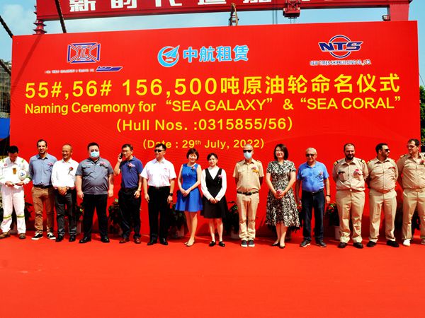 7月29日,公司在新區(qū)碼頭舉行船舶命名儀式,55#56#156500噸油船被分別命名為“SEA GALAXY”“SEA CORAL”號。