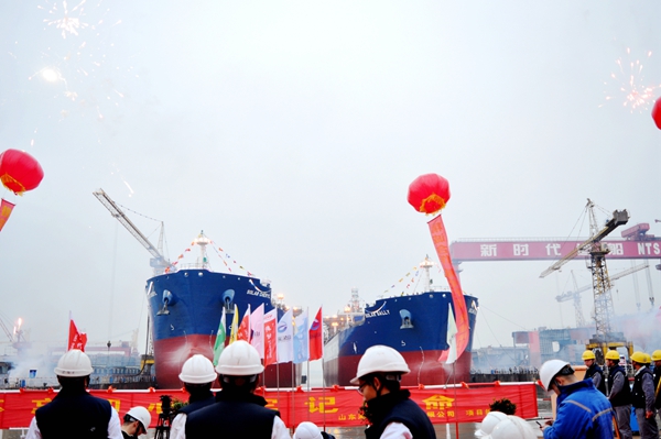 兩艘50000噸化學(xué)品油船順利下水(圖)