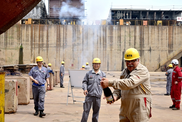 5月26日上午,公司在2#塢區(qū)域舉行船舶進塢合攏儀式,2#13000箱集裝箱船的船體結(jié)構(gòu)進塢合攏正式開始。