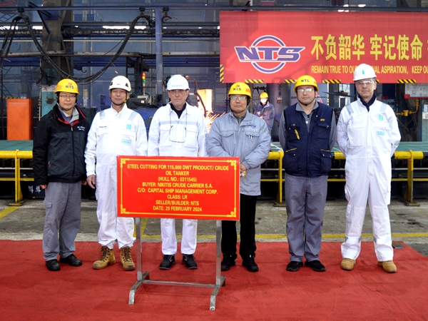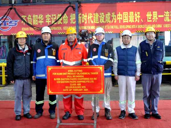 2月29日上午,公司在東區(qū)鋼加車間分別舉行船舶開工點火儀式,54#50000噸Ⅱ類化學(xué)品船、45#115000噸成品油船、50#113500噸油船等三艘船舶同日開工建造。常務(wù)副總經(jīng)理張玉永分別與新加坡船東EPS、希臘船東Capital、希臘船東Dynacom等公司代表出席儀式,營銷部、生產(chǎn)管理部、質(zhì)量管理部等部門相關(guān)人參加活動。