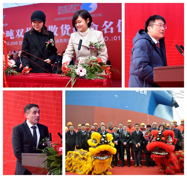 上午9:00,49#210000噸雙燃料動(dòng)力散貨船命名儀式在新區(qū)碼頭隆重舉行,公司領(lǐng)導(dǎo)劉海金、張玉永、袁衡、徐震宇等與船東EPS公司代表一起出席活動(dòng)?偨(jīng)理劉海金在致辭中表示,向各位來(lái)賓的到來(lái)表示熱烈的歡迎與衷心地感謝,自2019年與EPS簽訂了第一筆訂單到目前為止共簽訂了訂單31艘船舶,此次交付的是11艘210000噸雙燃料動(dòng)力散貨船系列船中的第10艘船舶。多年來(lái),基于雙方互信互利的合作基礎(chǔ),彼此逐漸熟悉、不斷理解、增進(jìn)熱愛(ài),期望在以后的合作中,繼續(xù)勠力同心攜手締造更多共商共贏、互利互惠的豐碩成果。在喜慶的氣氛中,49#210000噸雙燃料動(dòng)力散貨船被成功命名為“MOUNT GOWER”號(hào)。10:18,該船的簽字交付儀式在八樓會(huì)議室舉行,張玉永與船東EPS代表倪杰分別簽署交船文件,新船完工交付。