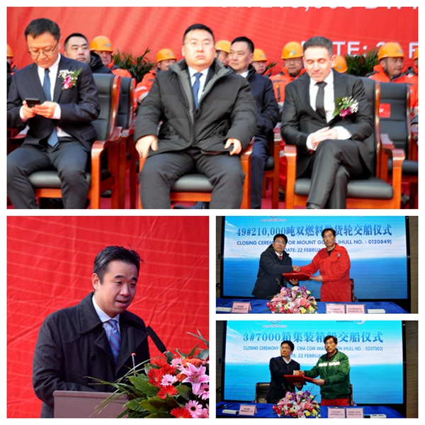 新春開(kāi)工以來(lái),公司全體員工秉持“開(kāi)工即實(shí)干”的理念,迅速將激情化為行動(dòng)、用實(shí)干顯示決心,交出了一天兩船交付、兩船下水的新成績(jī),讓新年“開(kāi)門(mén)紅”跑出了“加速度”,又為2024年喜開(kāi)新局獻(xiàn)上了一份隆重的賀禮。2月22日,3#7000箱集裝箱船完工交付、49#210000噸雙燃料動(dòng)力散貨船命名交付;4#7000箱集裝箱船、42#210000噸雙燃料動(dòng)力散貨船相繼下水,順利實(shí)現(xiàn)大節(jié)點(diǎn)目標(biāo)。