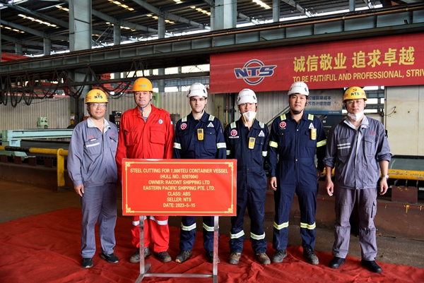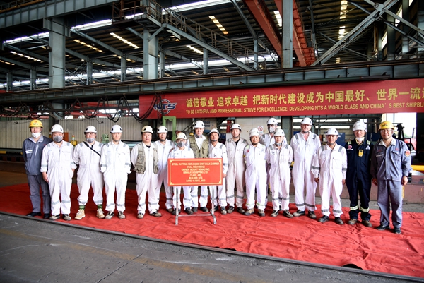 生產(chǎn)管理部部長陳月鋒、質(zhì)量管理部部長秦鋒分別與船東Eastern Pacific Shipping Pte. Ltd.(EPS)代表、船東喜馬拉雅代表及船級社代表等相關(guān)人員出席活動,見證船舶開工建造。