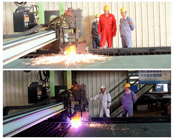 5月15日上午,公司在新區(qū)鋼加車間舉行船舶開工點火儀式,4#7000箱集裝箱船、42#210000噸雙燃料動力散貨船的船體結(jié)構(gòu)件開始預制。