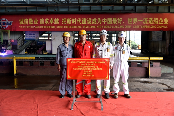 8月31日上午,公司舉行船舶開工點(diǎn)火儀式,38#47#210000噸雙燃料動(dòng)力散貨船的船體結(jié)構(gòu)件開始預(yù)制,兩船正式開工建造。