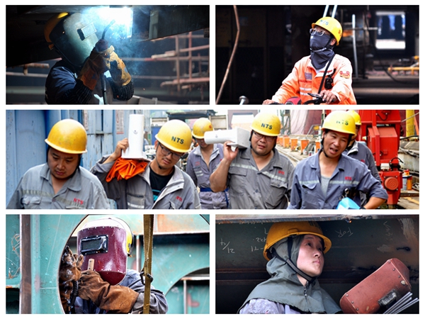 車間、外場、塢內(nèi)、碼頭、艙室、甲板上……電焊工人握著焊槍挑戰(zhàn)熱度;腳手工人擰著螺絲勇攀高度;搭載工人比拼合攏準(zhǔn)度;油漆工人精準(zhǔn)把握涂層厚度;運(yùn)輸工人確保運(yùn)輸速度;金加工人拿著卡尺把握精度、后道部門員工調(diào)試中趕進(jìn)度……,他們用熟練的技術(shù)和堅(jiān)韌的毅力,為每一個(gè)生產(chǎn)節(jié)點(diǎn)賦能發(fā)力。