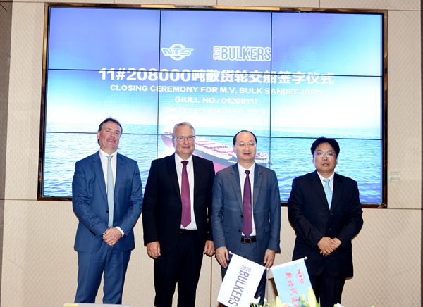 下午3:00,公司又舉行簽字交船儀式,11#208000噸散貨船正式交付船東。